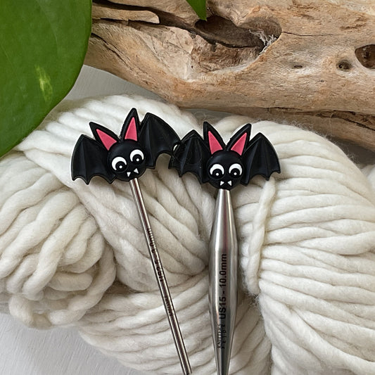 Knitting Stitch Stoppers, Adorable Vampire Bats HALLOWEEN Set of 2 knitting needle point protectors/ Knit tools Autumn +Fun Knit