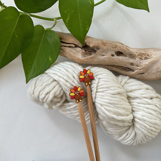Knitting Stitch Stoppers, ADORABLE MULTICOLOR TURKEYS Set of 2 knitting needle point protectors/ Knit tools Autumn +Fun Knit