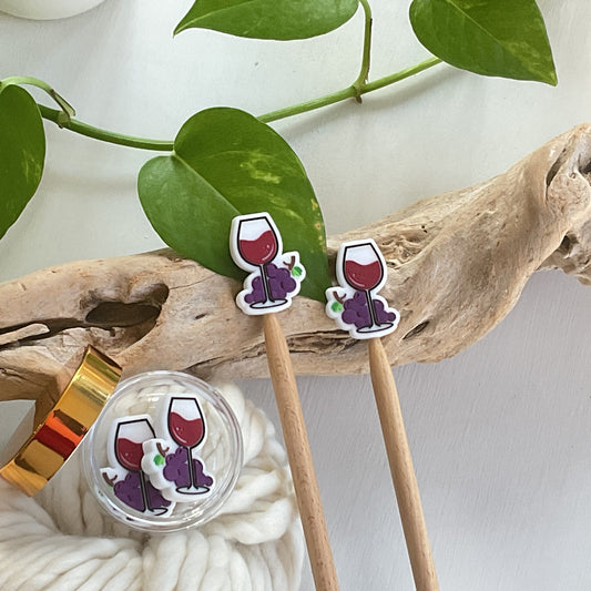 Knitting Stitch Stoppers, CHEERS glass of RED and WHITE wine stitch stoppers, Toast, white and red wine Set of 2 knitting needle point protectors