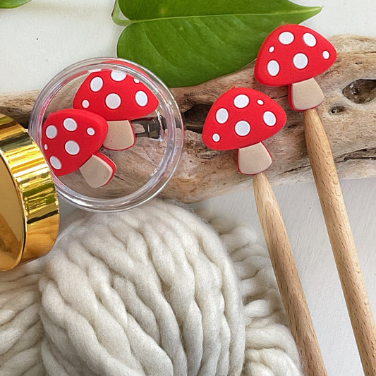 Knitting Stitch Stoppers, Cute and colorful Spotted Mushroom Red or Blue/ Green + Fun Knits, Knitting supplies